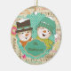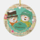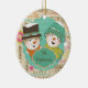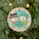 Schneemänner und Typografikschmuck zeichnen sich durch ein niedliches und farbenfrohes Design mit typografischem Hintergrund, weißen Polka-Punkten auf Aqua-Blau, einem Schneepaar mit Hüten und Winterschals und einem aqua-blauen Banner aus, das Sie ganz einfach mit Ihrem Namen personalisieren können!