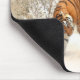 Tigermutter und Kind, die auf Schneelandschaftsfotos gehen.