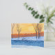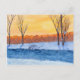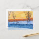 Melting Snow - Kunstpostkarte mit einem farbenfrohen, orangefarbenen Wintersonnenuntergang aus einem Acrylgemälde von M Rogers.