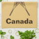 Ein gekreuztes Paar Schneeschuhe auf einer Hintergrundfarbe suggeriert braintan Leder. Es erscheint auch die benutzerdefinierte Textausgabe "Kanada". Es gibt verschiedene Stile von traditionellen Schneeschuhen. Die hier abgebildeten sind aus Ash und Moosehid Babiche (Webbing) im Alaskan-Muster. Länger und dünner als andere Stile wie der Bärenjunge, Alaskan Schneeschuhe ermöglichen ein natürlicheres Tor und sind gut geeignet für Langlaufreisen. Die leicht umdrehten Spitzen erlauben es, die Füße etwas zu ziehen. Seien Sie beraten Schneeschuhe können für einen ausgezeichneten Himmel, in der Regel im schlimmstmöglichen Augenblick.