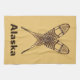 Ein gekreuztes Paar Schneeschuhe auf einer Hintergrundfarbe suggeriert braintan Leder. Es erscheint auch der Text "Alaska" mit individualisierbarem Text. Es gibt verschiedene Stile von traditionellen Schneeschuhen. Die hier abgebildeten sind aus Ash und Moosehid Babiche (Webbing) im Alaskan-Muster. Länger und dünner als andere Stile wie der Bärenjunge, Alaskan Schneeschuhe ermöglichen ein natürlicheres Tor und sind gut geeignet für Langlaufreisen. Die leicht umdrehten Spitzen erlauben es, die Füße etwas zu ziehen. Seien Sie beraten Schneeschuhe können für einen ausgezeichneten Himmel, in der Regel im schlimmstmöglichen Augenblick.