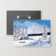 Ein Knopf mit einer schönen Winterlandschaft, inklusive schneebedeckter Berge, einer rustikalen Hütte und einem Buck mit Blick auf das Tal unter ihm. Original-Kunstwerk von W.B.