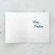 Niedliche Schneeszene in Blues und Weiß mit Weihnachtsbaum im Freien neben einem Bach. Verblendete Kanten am Design.
