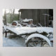 Ein alter Wagen und Traktor nehmen einen neuen Look mit einer Schneedecke auf einem Bauernhof in Nord-Idaho.