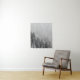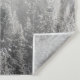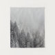 Landschaftsfoto von schneebedecktem Fichtenwald in Nebel.