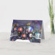 Eine surrealistische Weihnachtskarte mit leuchtend glänzenden Kugeln und einem schneebedeckten Sternenhimmel. Der Text "Frohe Weihnachten" ist in einem der Bälle erstellt. Dieses Produkt kann durch Ändern der Farbe der Karte und/oder durch Hinzufügen von mehr Text angepasst werden.