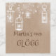 Rustikale Gunst-Markierung mit handgezeichneten weißen Laternen mit Schnee auf einem Hintergrund von braunem Kraftpapier. Geeignete Gefälligkeitstafel für handgemachten Wein, schwedischer Jul Glögg, Glögg, Glühwein oder Gluhwine.