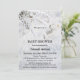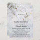 Traumhafte und magische, geschlechtsneutrale Babydusche mit einem Teddybär in einer glitzernden Schneeszene, der silberne Schneeflocken und einen schneebedeckten Baumzweig sieht.