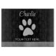 Silver Dog Paw auf schwarzem Hintergrund. Du musst wissen, dass du ein Foto bekommst!