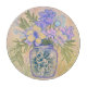 Rundholzbrett mit pastellfarbenem Design von Blume in einer Vase.