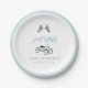 Schnell ein Retro-Autofahrer auf blauem Papier Tel Pappteller