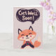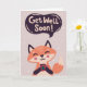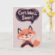 Niedlicher Fuchs mit Kaffee und "Get Well bald" Gruß. Schreib deine benutzerdefinierte Nachricht hinein.