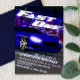 Beginnen Sie Ihre Motoren und fahren Sie bis zum Ziel, um den 1. Geburtstag Ihres Babys zu feiern. Diese Einladung wurde digital gezeichnet, um ein sehr schnelles Sportauto bei einem Nachtrennen zu veranschaulichen, bei dem niemand aufholen kann