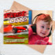 Beginnen Sie Ihre Motoren und fahren Sie bis zum Ziel, um den 1. Geburtstag Ihres Babys zu feiern. Diese Einladung wurde digital gezeichnet, um ein sehr schnelles Auto bei einem Rennwettbewerb zu illustrieren, bei dem niemand aufholen kann
