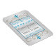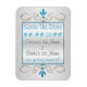 "Save the Date" Kühlschrank-Magnet mit türkisfarbenen Textfeldern für Sie personalisieren, Set gegen ein originelles Design von Leslie Sigal Javorek, mit 2 Mini-Sternen von David unter den Schnörkeln von Gold & Türkis auf einem (nicht metallischen) silbernen Hintergrund. Diese Magnete passen einfach und flexibel in einen Umschlag mit Ihren Einladungen oder von sich aus.