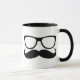 Der modische Schnurrbart mit starken schwarzen Gläsern.