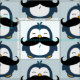 Niedliches blaues chubby Penguinmuster mit einem enormen schwarzen trendy Schnurrbart. Muster-Pinguin mit dem Schnurrbart.