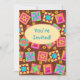 Mit dieser farbenfrohen, individuell anpassbaren Quilt-Einladung laden Sie ein Quilter oder Quilt-Liebhaber ein. Voll anpassen auf der Vorder- und Rückseite, um Ihre eigenen Worte, Namen und andere Informationen hinzuzufügen. Diese originelle Quiltkunst ist eine lebendige Einladung. Quilt Art basiert auf originalen Kunstwerken, mit bevorzugten Patchwork-Quiltblöcken und einzigartigen Blöcken in lebhaften und dynamischen Farben von Orange, Gelb, Rosa, Türkis und Kalkgrün auf einem schokoladenbraunen Hintergrund für eine schöne Farbpalette. Ein sonniges gelbes Oval steht auf der Vorderseite der Karte, um zu sagen "You're Invited" oder andere Worte Ihrer Wahl. Zeigen Sie Ihre Liebe, mit diesen Quilt-Art-Designs mit anderen Quilt-Art-Produkten zu quiltieren. Quilt art ist eine originelle Kunst aus Stoff und Quilt Designer Phyllis Dobbs und ist in einer Stoffsammlung von Quilting Treasures. Diese Kunst ist auf anderen Produkten und in verschiedenen Farben erhältlich. Mehr Produkte gibt es im Phyllis Business with Flair Store. Passend zu koordinierenden Briefmarke, Umschlägen, Aufklebern und Rücksendeadressen-Aufklebern.