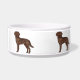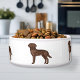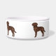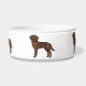 Desteis originelle Cartoon-Illustration einer schokoladenbraunen Farbe Labrador Retriever Rasse Hund. Das Hundedesign wird mehrmals auf diese Schüssel gelegt, sodass die Hundeabbildungen das Produkt umgehen. Dieses Design ist ideal für jeden Schokoladen Labrador Hundebesitzer, der nach einer lustigen und charmanten Schüssel für das Dinner oder Wasser seines Hundes sucht.
