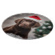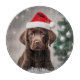Niedliche Schokolade Labrador Welpe mit einer Weihnachtsmannmütze.