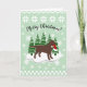 Schokolade Labrador Weihnachten Evergreen Bäume und Schneeflocken Weihnachtskarten für Hundefreunde, die Labradors Liebe. Schönes Schokolade Labrador Silhouette Design mit Weihnachtsmannmütze. Schnee und immergrüne Bäume. Erstellt von Naomi Ochiai.