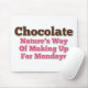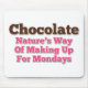 Schokolade, die Art und Weise, wie die Natur Montags wieder gut macht. Ein niedliches, lustiges, humorvolles Schokoladenkuchen-Sprichwort zitiert Design in rosa und braun Text Schriftart.