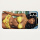 Das Gehäuse des Telefons ist ein lebendiges Kunstwerk eines atemberaubenden Schwarzen Buttons in einem gelben Blumenanzug. Vintage Farben, aber ein einzigartiges, modernes Porträtgemälde einer herrlichen, braunhäutigen Bikini-Schönheit in Ohrringen, die vor dem Ozean posieren. Sommer ästhetisch, wirbelhaft.