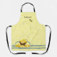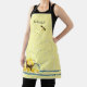 Diese reizvolle Schürze hat einen gelben Hintergrund mit weißen Punkten. Es enthält einen Korb aus Zitronen mit einer kleinen Biene und Text, der lautet: "Bee Beautiful!". Unten sind zwei blaue Linien. Die Gurtbänder (schwarz dargestellt) sind in zwölf Farben erhältlich.