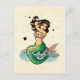 Liebliche Meerjungfrau auf dem Felsen. Dieses phantastische Meereslebewesen lockt reisende Seeleute der Sieben Meere. Lange schwarze Haare, rubinrote Lippen und passender Körper. Sie ist eine der verführerischsten Mädels des Ozeans und muss nicht ihre atemberaubende Stimme erwähnen.