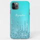 Dieses hübsche iPhone Gehäuse-Design verfügt über Imitat Aqua Minze und türkisfarbenen tropfenden Glitzer metallische Textur und eleganten kalligraphischen Schriftart.