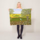 Eine Fleecedecke mit einem wunderschönen Bild einer Naturlandschaft: Ein Vogel, der auf einem verwitterten Zaun sitzt, Wildblumen, die um den Zaun wachsen, ein Bauer auf einem Traktor, der sein Land bearbeitet, Bäume mit Blätter und Bauernland mit verschiedenen Farben. Original-Kunstwerk von W.B.