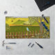 Eine Schreibtischmatte mit einem schönen Bild einer Naturszene: Ein Vogel, der auf einem verwitterten Zaun sitzt, Wildblumen, die um den Zaun wachsen, ein Bauer auf einem Traktor, der sein Land bearbeitet, Bäume mit Blätter, und Bauernland mit verschiedenen Farben. Original-Kunstwerk von W.B.