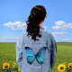 Schöne Big Blue Butterfly Denim Jacket Jeansjacke