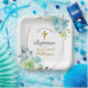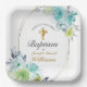 Schöne blaue Blume Golden Cross Baby Taufe Pappteller