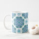 Diese wunderschöne Tasse zeichnet sich durch ein faszinierendes Fliesenmuster aus blauen und grünen Medaillons aus. Die Farbtöne sind Cerulean, Pfefferminzjade und Maisblume auf weißem Hintergrund. Kaufen Sie ein paar für Ihr nächstes Tee-Party oder Treffen des Buchclubs. Das wird in Ihrer Hütte oder in der Küstenlandschaft wunderschön aussehen. Dieses Design stammt vom Oregon Tile Maker Fay Jones Day.