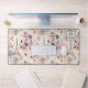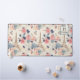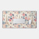 Schreibtischmatte mit französischem Motivmuster. Hübsche Blume, Eiffelturm und Schmetterlinge. Die Farben sind pink, blau, pfirsichfarben und creme.