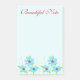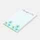 Grosser blauer Blumendruck auf diesem kleinen blauen Post-It Note. Der Text kann personalisiert sein, oder Text kann entfernt werden, der hellblaue Hintergrund kann für jede Farbe personalisiert sein. Schöne Geschenkidee für ein Büro.