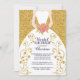 Moderne Brautdusche mit einer Braut in weißem Gewand mit einem goldenen Blumenzwirn-Akzent im Imitat und einem rosa und goldgelben Brautbouquet-Set auf klassischem Glitzer-Blume-Hintergrund aus goldenen Imitaten. Dreh unsere schicke und stilvolle Braut-Polterabend-Einladung zu einem passenden Glitzer zurück für eine besondere Touch. Zeitgenössisches Brautparty lädt zum Frühling Brautparty, Brautparty, Herbst Brautparty oder Winter Brautparty ein. Besuchen Sie unseren Shop, um dieses beliebte Brautdesign in verschiedenen Farben zu sehen.