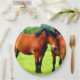 Schöne Bucht von Pferden in üppiger grüner Wiese Pappteller