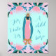 Ein hübsches pastellfarbenes Plakat mit einem handlichen illustrierten Bild der gesegneten Mutter mit Kind. Dieses Plakat lautet: "Für uns ist ein Kind geboren".