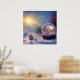 Wunderschönes Fantasy Digital Art Poster, das mit AI Rendering Software erstellt wurde, bietet eine magische Winterwunderlandszene mit einer größeren als Life Snowglobe. Der Text "Wandern in einem Winterwunderland" ist individuell anpassbar