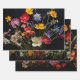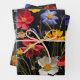 Schöne farbenfrohe Blume auf schwarz Geschenkpapier Set