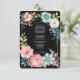 Blumenfarbene Vintage Hochzeit danken Ihnen Karte mit dem Design von Blume umwickelt in einem Rahmen, mit den Farben Rosa, Blau, Grün und ein schwarzer Hintergrund. Sehr hübsch und niedlich.