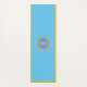 Schöne Flamingos auf hellblauen Yoga Mat. Die Rückseite ist himmelblau mit goldenem Rahmen und bearbeitbarem Yoga-Wort.