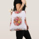 Blumenmuster Tote Tasche mit Blumenmuster im Bouquet-Stil auf schlichtem weißem Hintergrund. Diese Tasche kann zum Einkaufen, für lässige Ausflüge und als schönes Accessoire zu Ihrem Lieblingsoutfit verwendet werden.