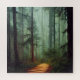 Die schöne und ruhige KI unterstützte Fantasy Digital Artwork Quadrat Puzzle mit Holzweg durch mistige Waldbäume.