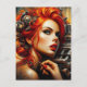 Schöne Frau mit rotem Haar Steampunk Postkarte