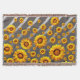 Schöne gelbe Blumen auf grauem Hintergrund mit silberfarbenen Streifen.
