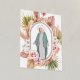 Ein wunderschöner Ausdruck mit einem handgemalten illustrierten Bild der gesegneten Mutter, Aquarellblumen und Goldfoliendetails.