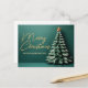 Herrliche goldene Schrift auf einem eleganten grünen Hintergrund und ein Weihnachtsbaum, der die einzigartige Illusion verleiht, 3D zu sehen, komplett mit einem hübschen Stern an der Spitze. Ein modernes handgeschriebenes Kratzen über Ihrem personalisierten Gruß auf einer modernen Postkarte ohne Foto.